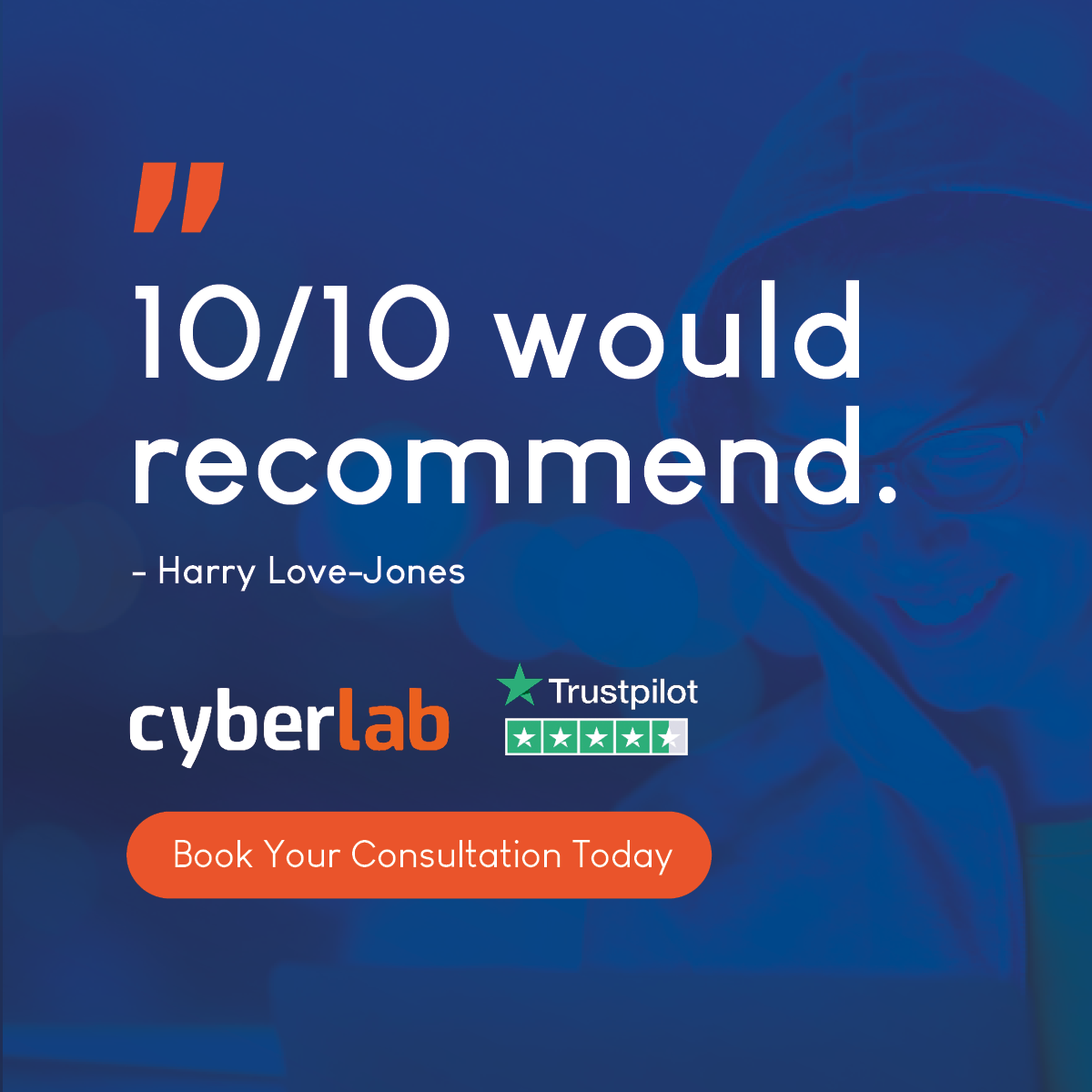 Our customers rate us as Excellent on TrustPilot CyberLab before in a previous Head of IT role, I had no hesitation in engaging them again to assist us with our security needs. Simply, I wouldn’t use them if they didn’t consistently deliver value.” - Head of IT, NHS Trust