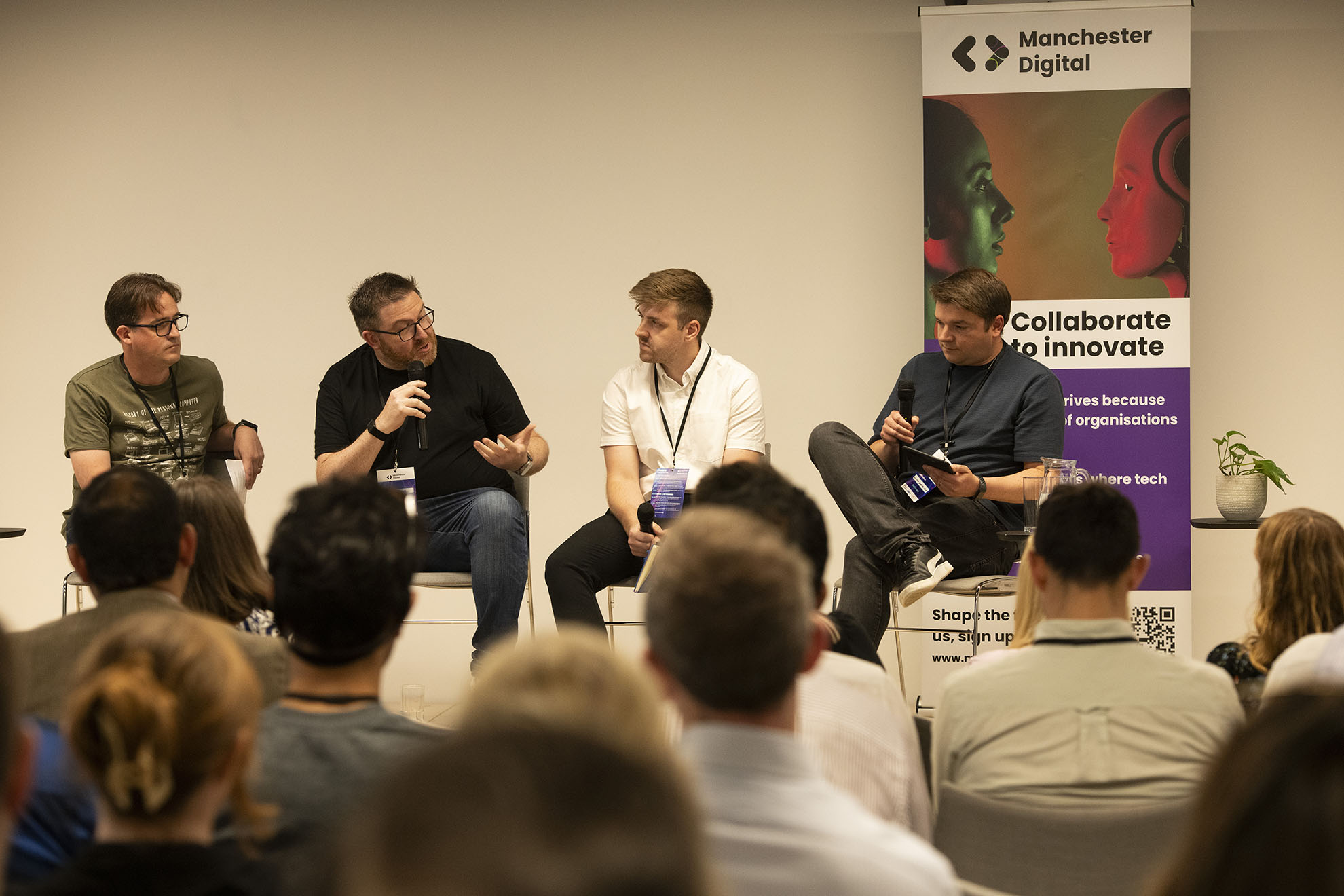 L-R: Chris Bush (Nexer Digital), James Cowe (Barclays), Matthew Workman (CyberLab), Tim Brewin (Lloyds Banking Group)Northern AI - Innovating With Purpose at Lloyds Banking Group